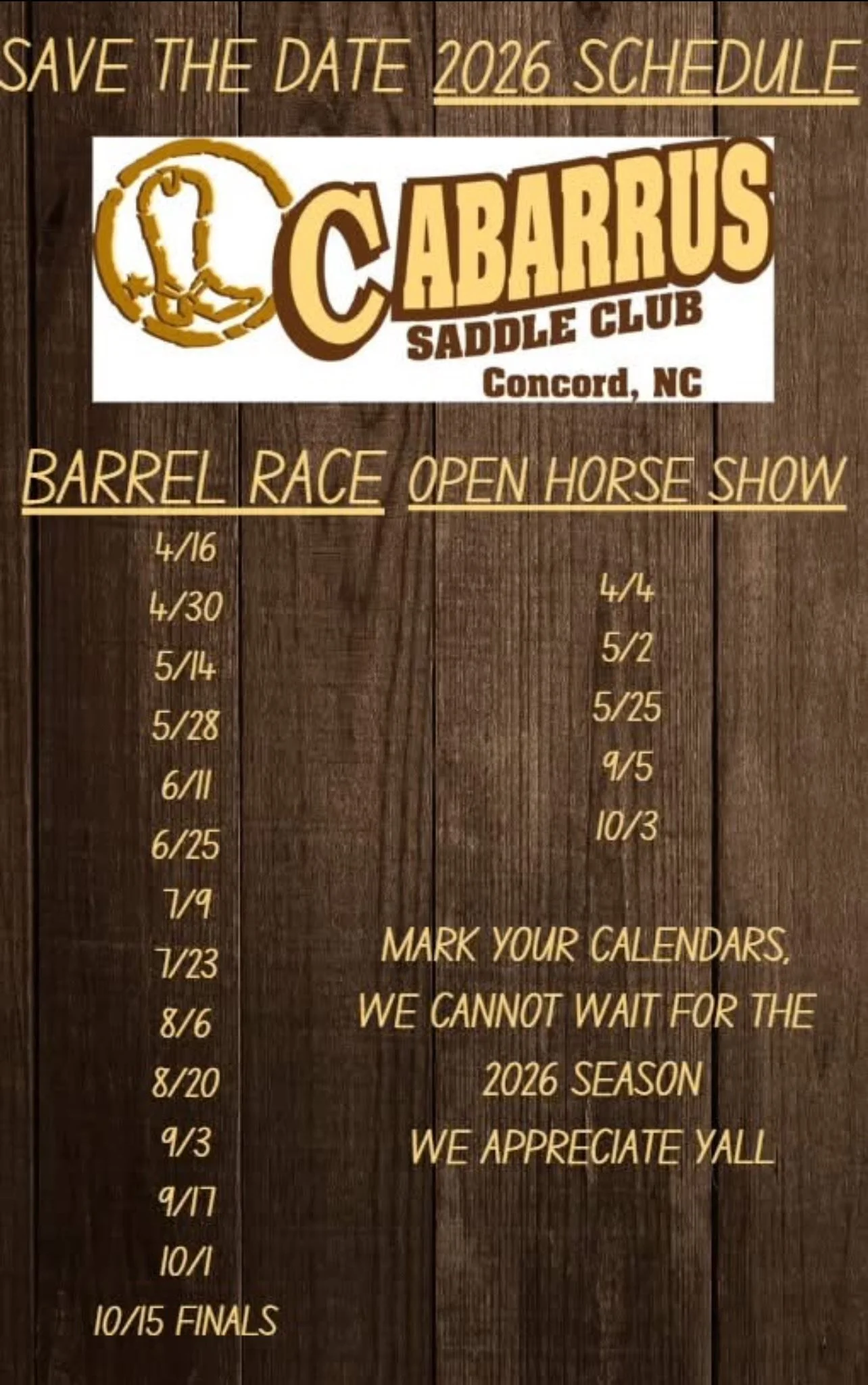 At Cabarrus County Saddle Club, there’s always something happening in the arena! From our open horse shows to our Jackpot Barrel & Pole Bending Series, we host events that bring together riders, families, and spectators for fun-filled weekends of friendly competition.